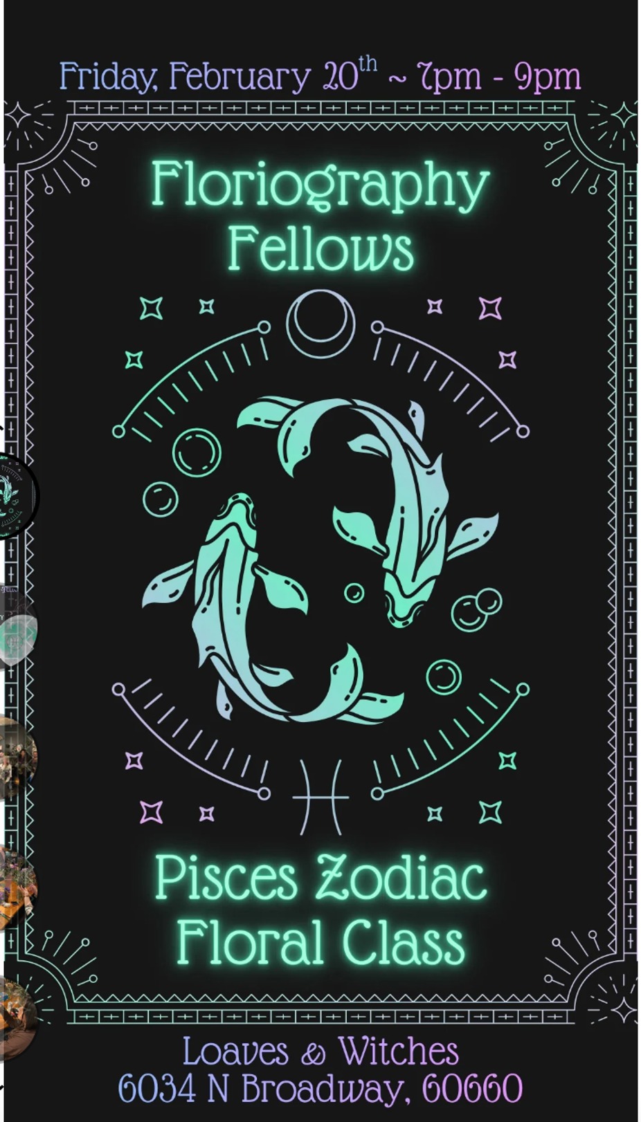 Pisces season invites us to dive deep into our emotions, our dreams, and the mystical currents that connect us all. We invite you to join us Friday, February 20th from 7–9pm at Loaves & Witches for an evening exploring Pisces through the Language of Flowers.